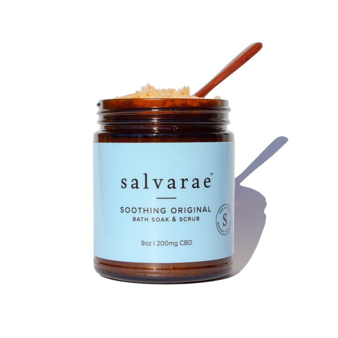 Salvarae's CBD Bath Soak is made with 100% organic ingredients. Concentrated with arnica, chamomile, calendula, and other nurturing essential oils and botanicals. Notes of citrus and vanilla with undertones of lavender and bergamot.